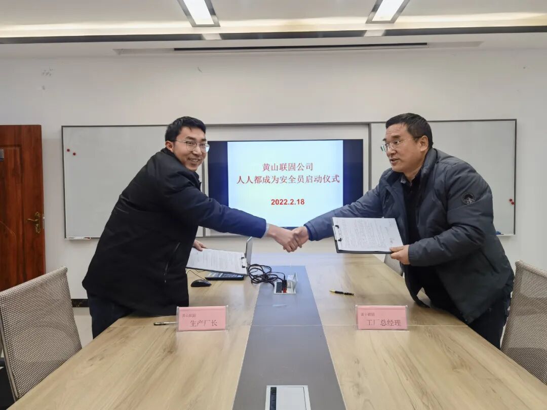 黄山联固新材料科技有限公司于2022年2月18日上午在黄山工厂举办了“人人都是安全员”安全管理启动仪式活动!