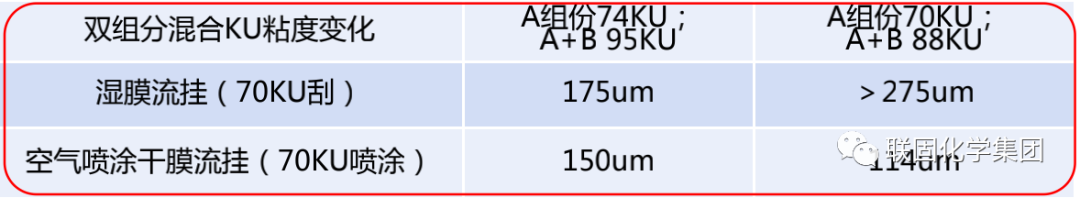 Banco 928为环氧体系提供优异的抗流挂,双组份混合后增粘,涂料系统的施工性极大扩展,更易在配方设计上控制流变状态。让工程师有更大的空间提高流挂性能,我们在颜基比为1.5的配方中,使用缔合型增稠剂在70ku粘度下,空气喷涂干膜可以达到150um的流挂状态。