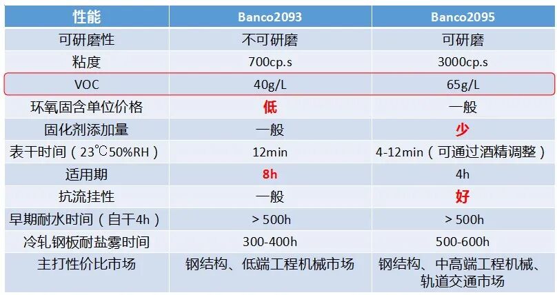 表1:两套低VOC、高性价比环氧分散体方案:2093、2095